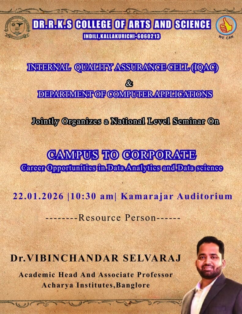 The Department of Computer Application was established in the year 2000. It is equipped with state-of-the-art computer laboratories and grown in infrastructure in terms of space,.
