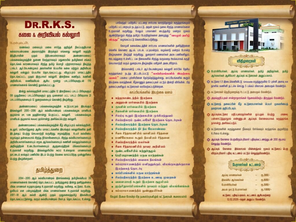 Computer ApplicationI am absolutely fortunate to be a student of the Department of Tamil. The Department of Tamil is a repository of traditional wisdom and modern knowledge. It motivates to enhance the knowledge and skills in literature.